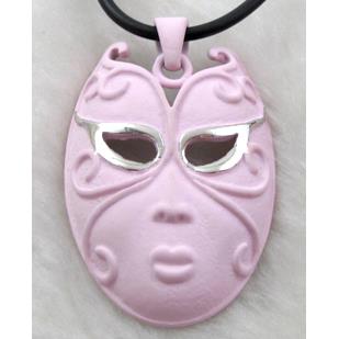 • lacquered mask Necklace, alloy, rubber cord, pink