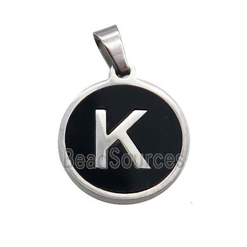 • Raw Stainless Steel Pendant Pave Black Agate Letter-K
