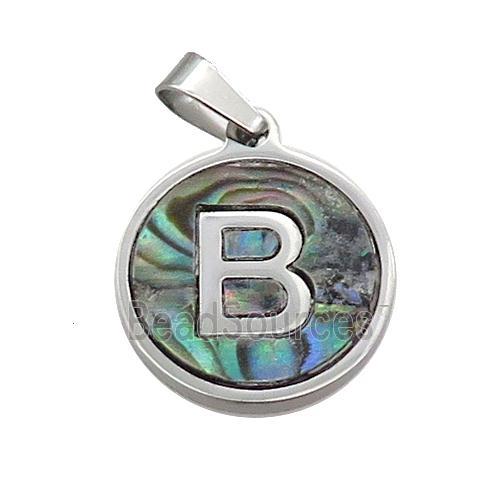 • Raw Stainless Steel Pendant Pave Abalone Shell Letter-B