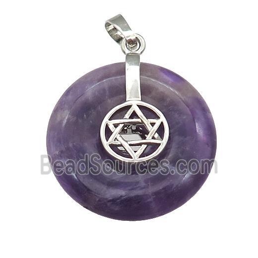 • Natural Purple Amethyst Donut Pendant With Alloy David Star