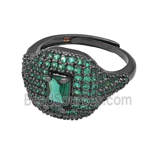 • Copper Rings Micro Pave Green Zirconia Adjustable Black Plated