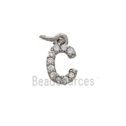 • Copper Pendant Pave Zirconia Letter-C Platinum Plated