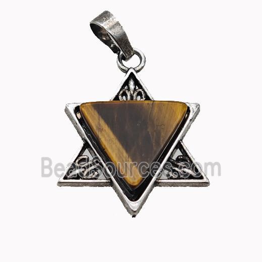 • Alloy David Star Pendant Pave Tiger Eye Stone Antique Silver