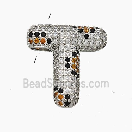 • Copper Letter-T Pendant Micropave Zirconia Platinum Plated